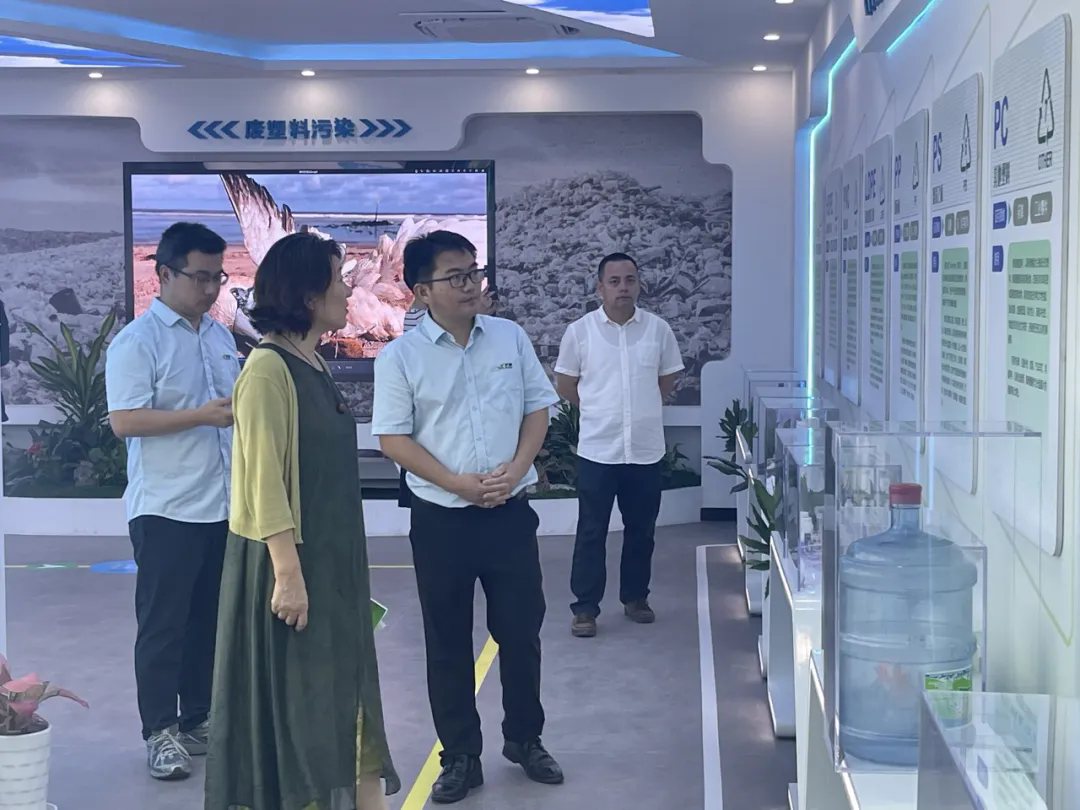 11月27日上午,省生态环境厅海洋处王静副处长一行来我司调研,公司董事长毛旭君陪同参观公司环保展厅和回收塑料生产车间,针对海洋塑料废弃物回收利用问题深入沟通交流。