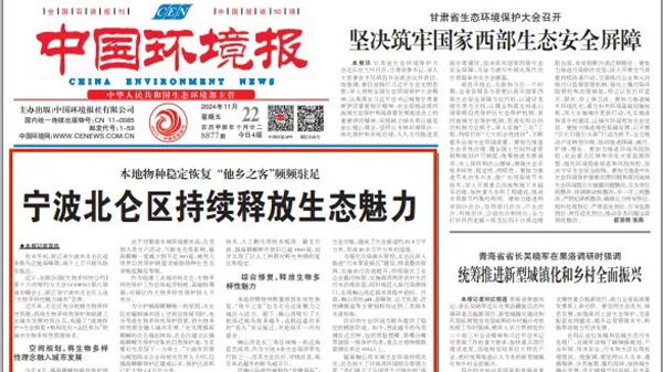 11月22日,《中国环境报》头版头条刊发《本地物种稳定恢复 “他乡之客”频频驻足 宁波北仑区持续释放生态魅力》一文,点赞宁波北仑在生物多样性保护方面所采取的措施和积累的经验。